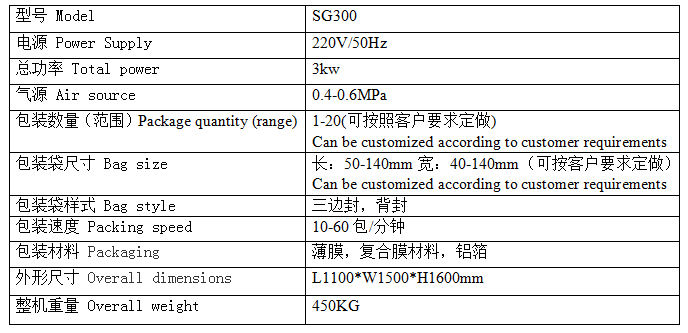 2. PLC control system is adopted for electric control, and Chinese man-machine interface is provided, so that the equipment is simple to operate, easy to adjust, and high in automation. It is suitable for single material packaging and mixed packaging of multiple materials.